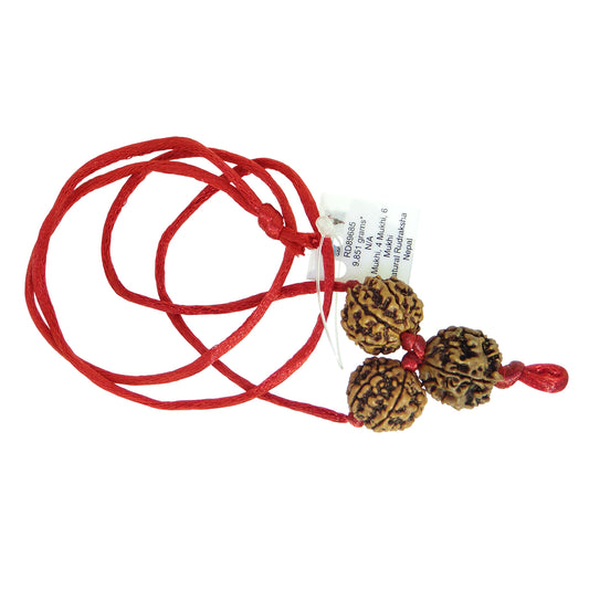 Arihant Gems & Jewels Brown Saraswati Bandh 2 Beads of 4 Mukhi/Faced & 1 Bead of 6 Mukhi/Faced Rudraksha | Natural & Certified | Astrological Rudraksha | Unisex Both for Men & Women