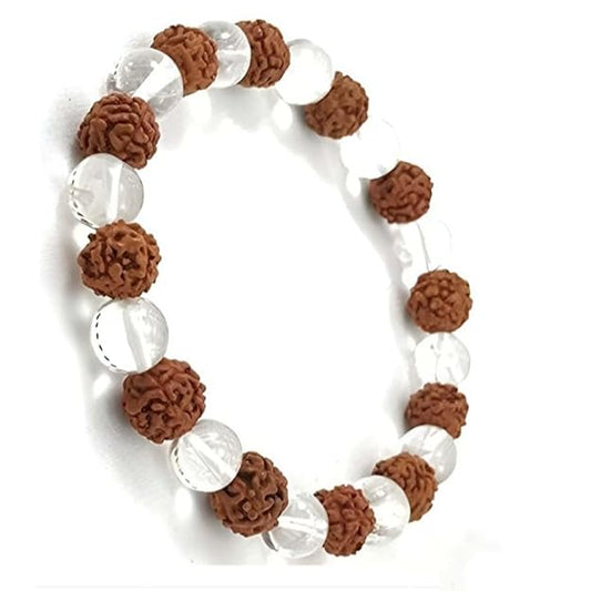 Diamond-Cut Rudraksha & Sphatik Bracelet - Natural & Certified Astrological Gemstone for Men & Women (Unisex)