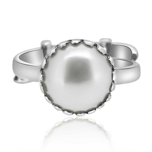 Pearl Ring Silver Ring Moti 4.25 Ratti to 12.25 Ratti Natural & IIGS Certified Pearl (Moti) Astrological Gemstone Adjustable Silver Ring by ARIHANT GEMS & JEWELS