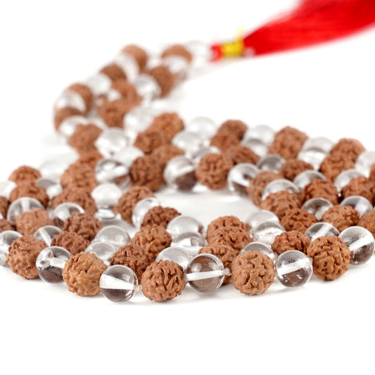 Sphatik/crystal+Rudraksha Jaap Mala for Pooja (108+1 Beads) | Natural & Certified | Astrological Beads | Positive Effect | Unisex Both for Men & Women (Sphatik And Rudraksha Mala)
