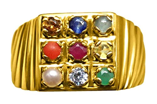 Natural Navaratna (9 Stones) Panchdhatu Gold Plated Ring 100% Original & Certified by Arihant Gems & Jewels