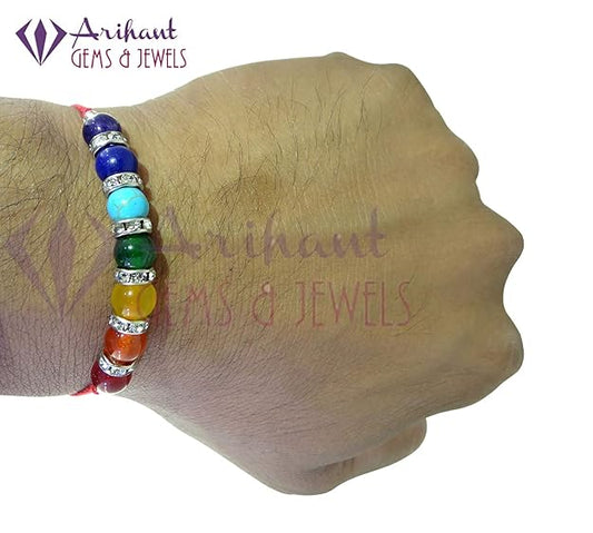 Arihant Gems & Jewels 7 Chakra Energetic Healing Stone Rakhi for Brother | Natural & Certified | Astrological Gemstone | Positive Effect