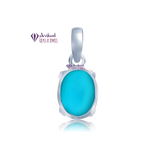Arihant Gems and Jewels Natural Certified Turquoise (Firoza) Silver Pendant 3.25 Ratti to 12.25 Ratti for Men & Women