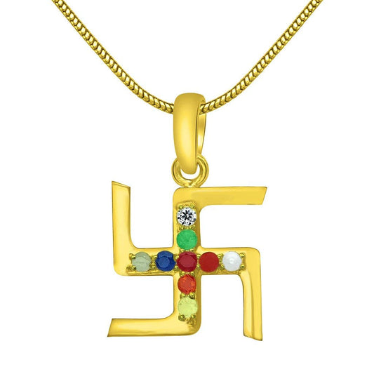 Arihant's Natural Navaratna (9 Stones) Gold Plated Pendant 100% Original & Certified