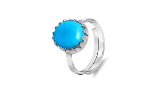 Turquoise (Firoza) 3.25 - 12.25 Ratti Natural & Certified Astrological Gemstone Silver(925) Crown Setting Ring