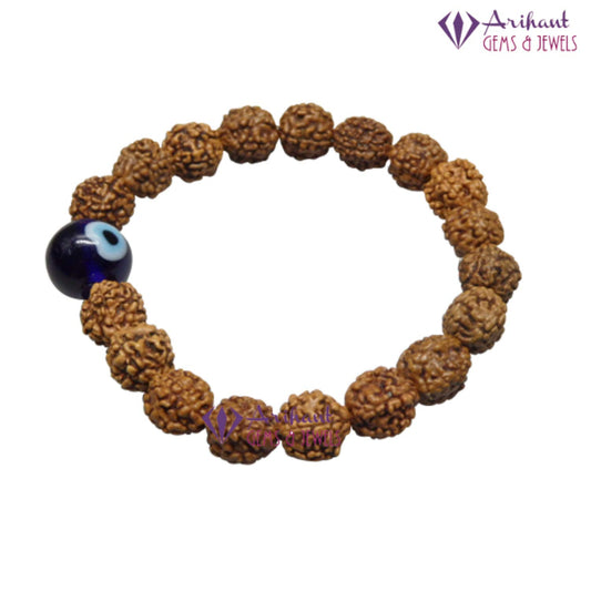 Evil Eye (Nazar Suraksha Kawach) Bracelet with 5 Mukhi/Faced Indonesia Rudrakash | Natural & Certified | Astrological Five Mukhi/Faced Rudraksha with Evils Eye | Positive Effect | Unisex Both for Men & Women| Arihant Gems & Jewels