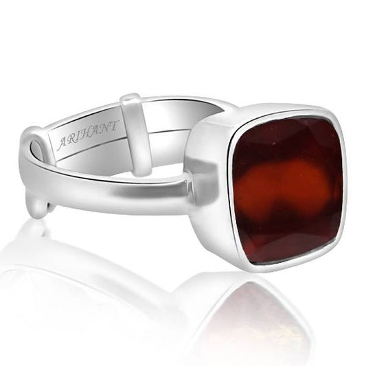 Hessonite Garnet (Gomed) 3.25 - 12.25 Ratti Natural & Certified Astrological Gemstone Adjustable Silver(925) Cushion Bezel Setting Ring