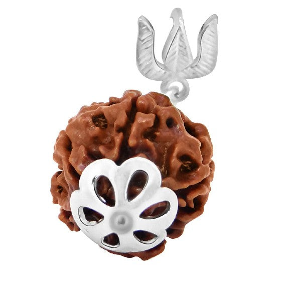 4 Mukhi NEPALI RUDRAKSHA SILVER 925 TRISHUL PENDANT / Four Faced RUDRAKSHA 100% Original & Certified