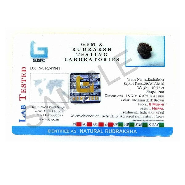 - Eight mukhi certified ‘Nepali Rudraksha’.
