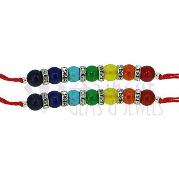 Arihant Gems & Jewels Multicolour 7 Chakra Energetic Healing Stone Rakhi for Brother | Natural & Certified | Astrological Gemstone | Positive Effect (Set of 2)
