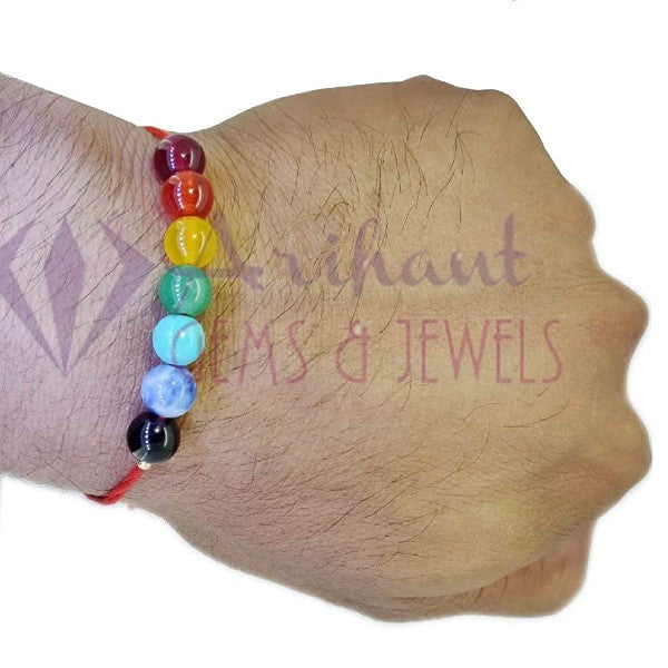ARIHANT GEMS & JEWELS Multicolour 7 Chakra Energetic Healing Stone Rakhi for Brother (Set 3)