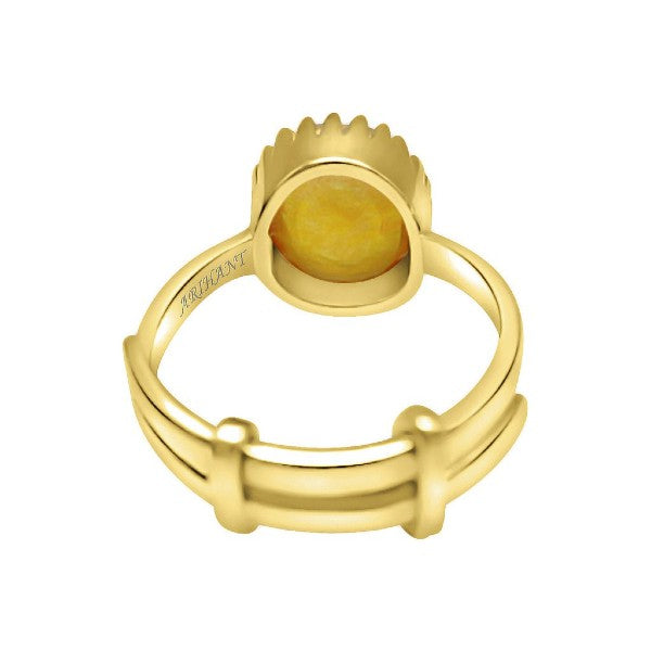 Bangkok Yellow Sapphire (Pukhraj) 4.25 - 12.25 Ratti Certified Astrological Gemstone Panchdhatu Crown Setting Ring