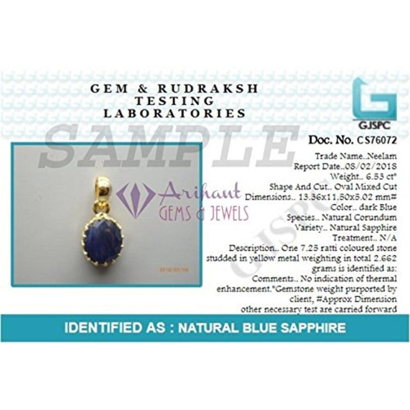 Blue Sapphire (Neelam) 3.25 - 12.25 Ratti Natural & Certified Astrological Gemstone Panchdhatu Crown Setting Pendant