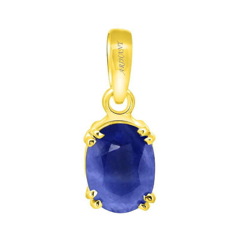 Blue Sapphire (Neelam) 3.25 - 12.25 Ratti Natural & Certified Astrological Gemstone Panchdhatu Prong Setting Pendant