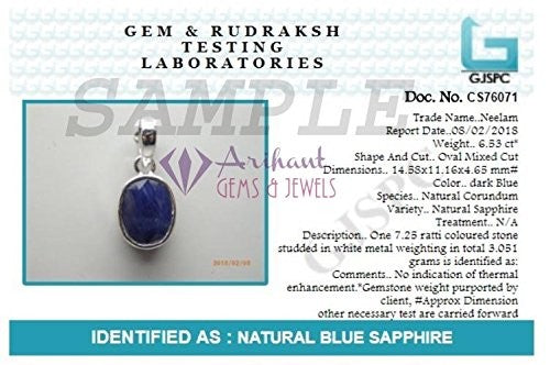 Blue Sapphire (Neelam) 3.25 - 12.25 Ratti Natural & Certified Astrological Gemstone Silver (925) Bezel Setting Pendant