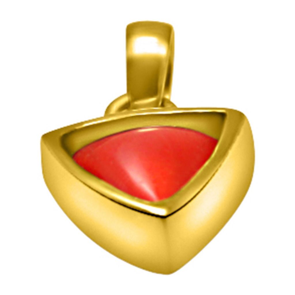 Coral (Moonga) 4.25 - 12.25 Ratti Natural & Certified Astrological Triangular Gemstone Panchdhatu Bezel Setting Pendant