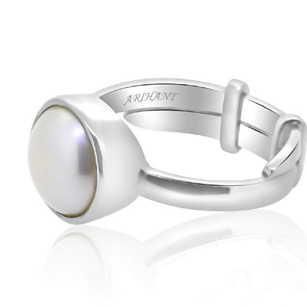 Fresh Water Pearl (Moti) 3.25 - 12.25 Ratti Certified Astrological Gemstone Adjustable Silver(925) Bezel Setting Ring