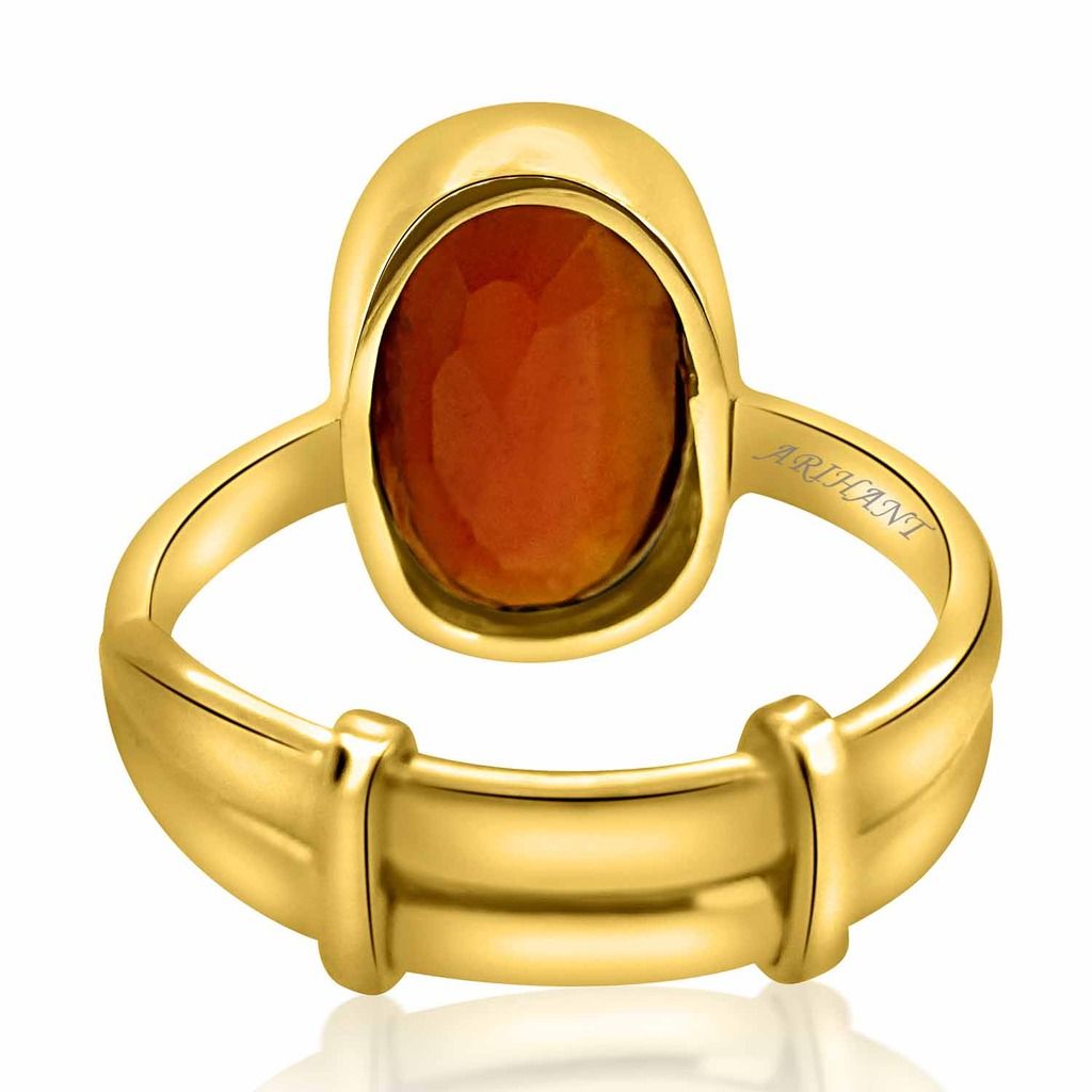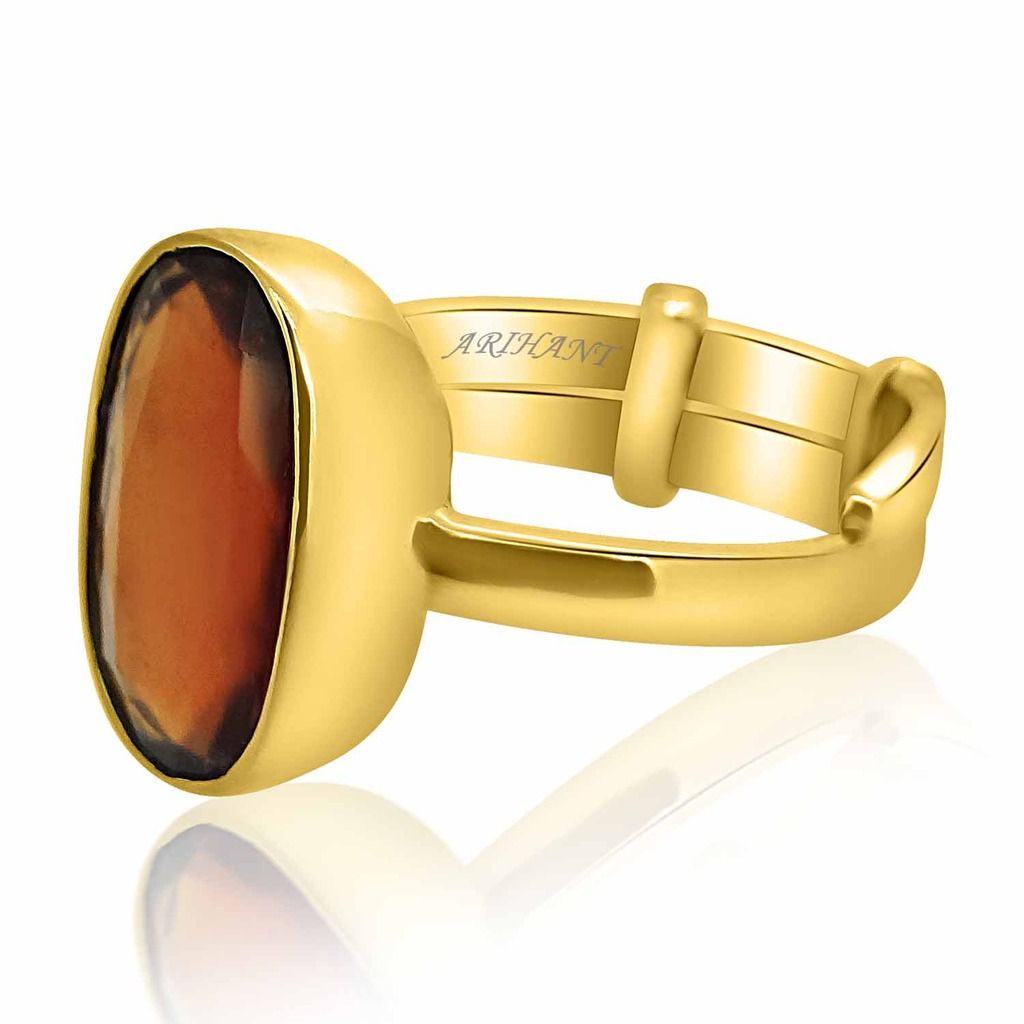 Hessonite Garnet (Gomed) 3.25 - 12.25 Ratti Natural & Certified Astrological Gemstone Adjustable Panchdhatu BEZEL Setting Ring