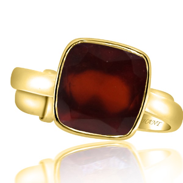 Hessonite Garnet (Gomed) 3.25 - 12.25 Ratti Natural & Certified Astrological Gemstone Adjustable Panchdhatu Cushion Bezel Setting Ring