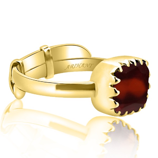 Hessonite Garnet (Gomed) 3.25 - 12.25 Ratti Natural & Certified Astrological Gemstone Adjustable Panchdhatu Cushion Crown Setting Ring