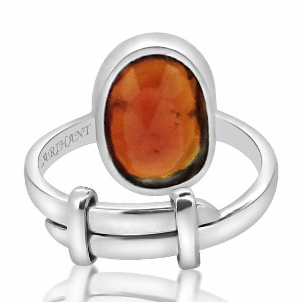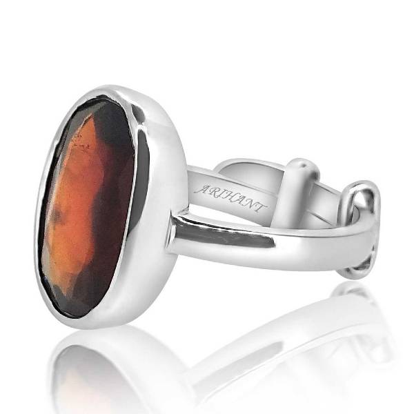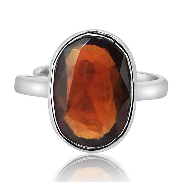 Hessonite Garnet (Gomed) 3.25 - 12.25 Ratti Natural & Certified Astrological Gemstone Adjustable Silver(925) BEZEL Setting Ring
