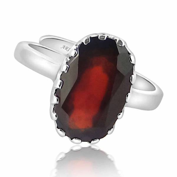 Hessonite Garnet (Gomed) 3.25 - 12.25 Ratti Natural & Certified Astrological Gemstone Adjustable Silver(925) Crown Setting Ring