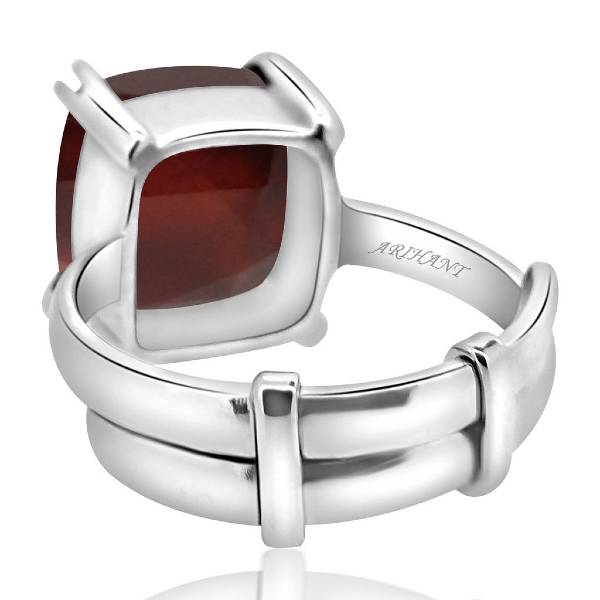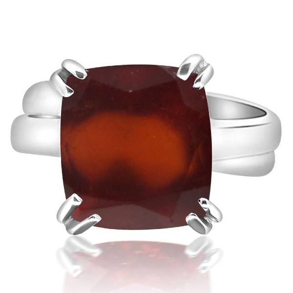 Hessonite Garnet (Gomed) 3.25 - 12.25 Ratti Natural & Certified Astrological Gemstone Adjustable Silver(925) Cushion Prong Setting Ring