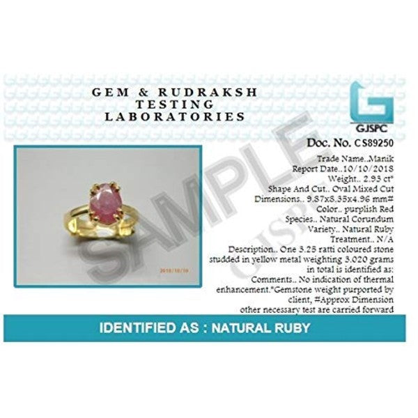 Ruby (Manik) 3.25 - 12.25 Ratti Natural & Certified Astrological Gemstone Panchdhatu Prong Setting Ring