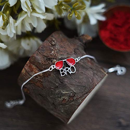 Silver 925 "Bro/Bhai/Rudraksha" Designer Elegant Silver Rakhi for Your Brother for Rakshabandhan by Arihant Gems and Jewels